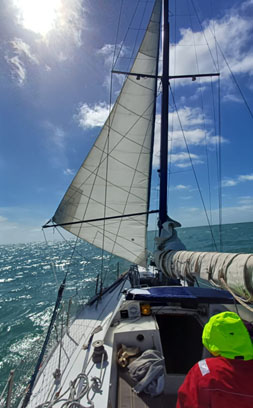 A la ida: Salimos el día 7 de enero a las 23,15. La marea había estado a las 21,30 o sea que aún pudimos aprovechar la bajante por el canal principal. Llegamos a la boya 9 (a motor) a las 3,30 justo a la hora de la bajamar. A partir de ahí todo a vela hasta la desembocadura del Río Negro.