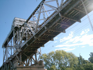 En la parte posterior del puente, se encuentra un inmenso tanque que es llenado con agua del río mediante bombeo. Éste, una vez lleno sirve de contrapeso y hace elevar el puente. Inaugurado en 1931, es el único puente basculante a contrapeso hidráulico existente en el mundo en la actualidad. Solo se construyeron dos de este tipo. El otro se encontraba en Japón y fue destruido durante la segunda guerra mundial. Notable ¿no?