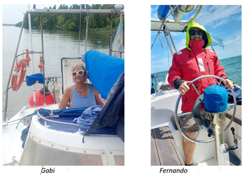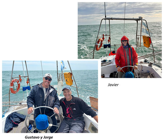 A la vuelta: Gustavo Espil, Jorge Marinángeli, Oscar Isa. Y cuando estábamos a punto de zarpar tuvimos la alegría de que se sumara Javier Patiño (tendríamos práctico a bordo, jeje).