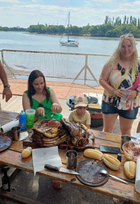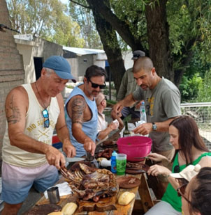Jorge había contactado con la flota de pamperistas perteneciente al Club Náutico La Ribera de Viedma, anunciándoles la llegada del Azul. Allí nos esperaban al mediodía con un tremendo cordero a la parrilla.