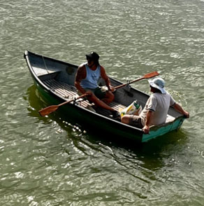 Nos pareció que la profundidad seguía del lado de Viedma, ya que veíamos una linda barranca a nuestra izquierda. Error. Varamos feo. Como la marea seguía creciendo al rato estábamos otra vez a flote y volvemos para atrás. Javier venía a nuestro encuentro en el Payuca y nos empezó a guiar.
